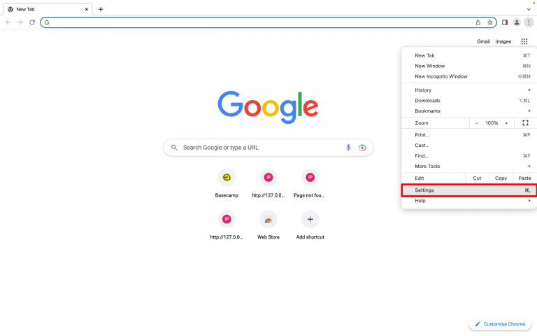 • Click on the three vertical dots icon located at the top right corner of the browser.
