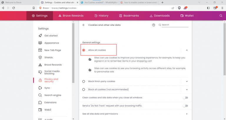 That’s it! You have successfully accessed the cross-site cookies settings in Brave on your Windows.