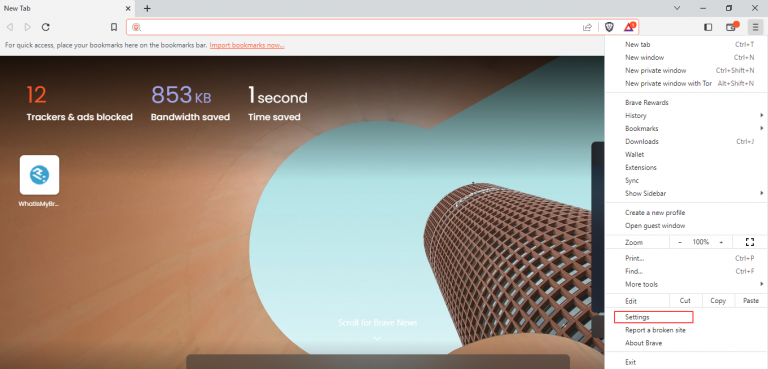 - Open “Brave” browser on your Windows.