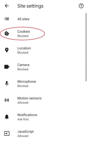 - Tap on “Cookies“.