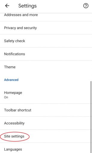 - Scroll down and tap on “Site settings“.