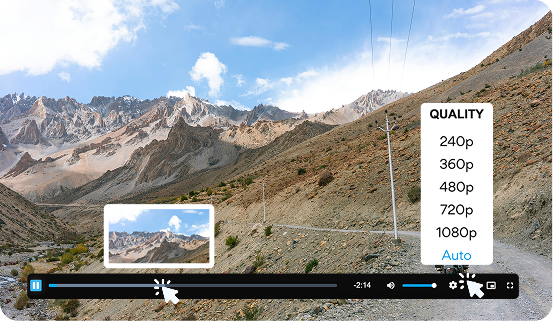 Show only what matters — play button, progress bar, volume, speed, fullscreen, and quality controls. Arrange and position them exactly where you want.