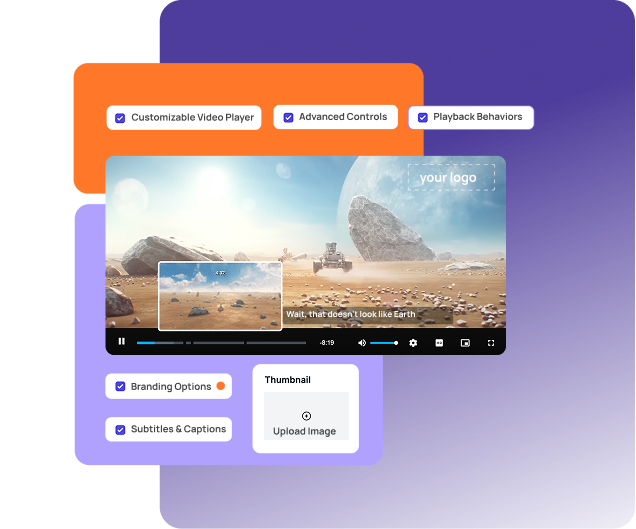 Customize controls, appearance, chapters, subtitles, and thumbnails for an engaging, professional experience.